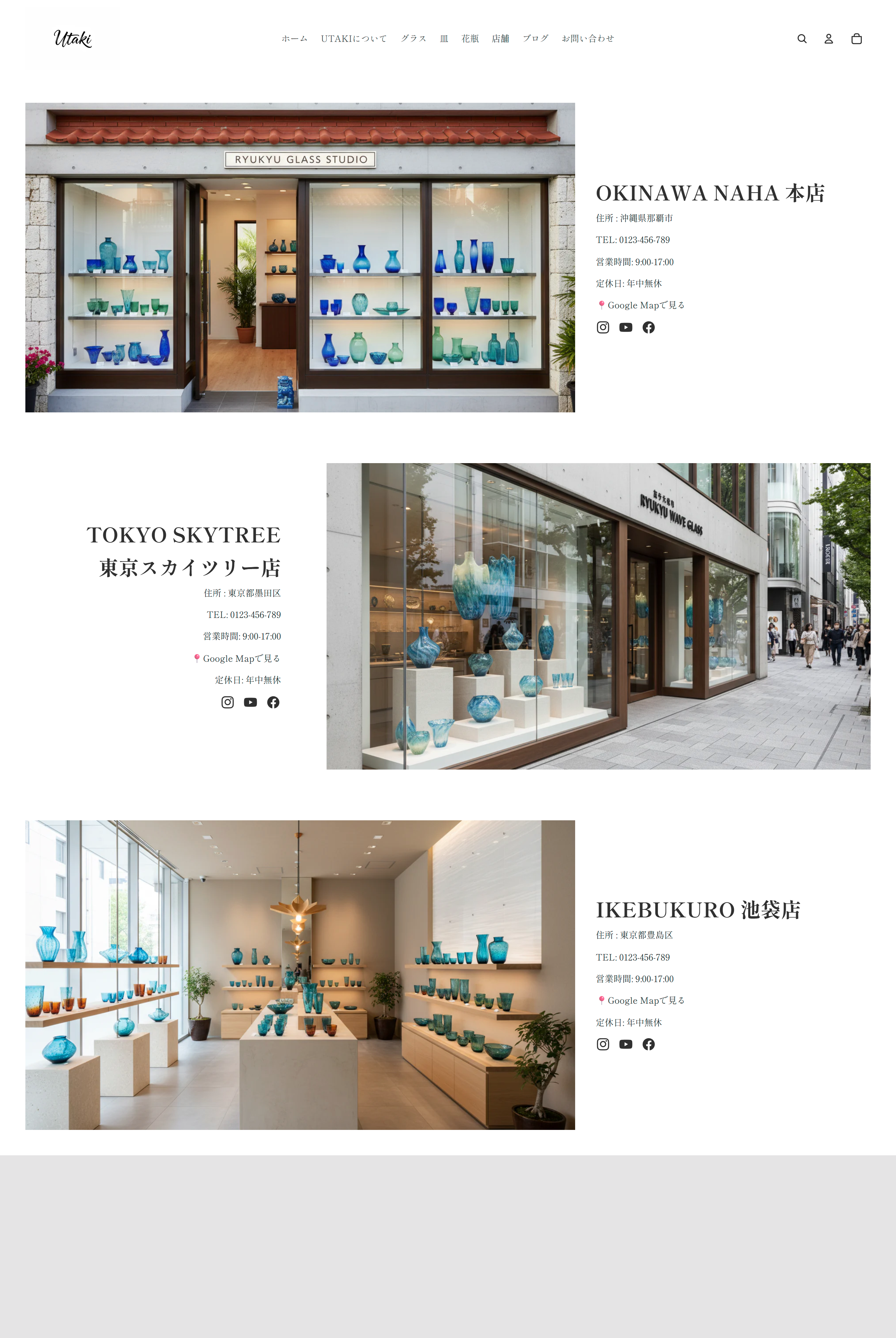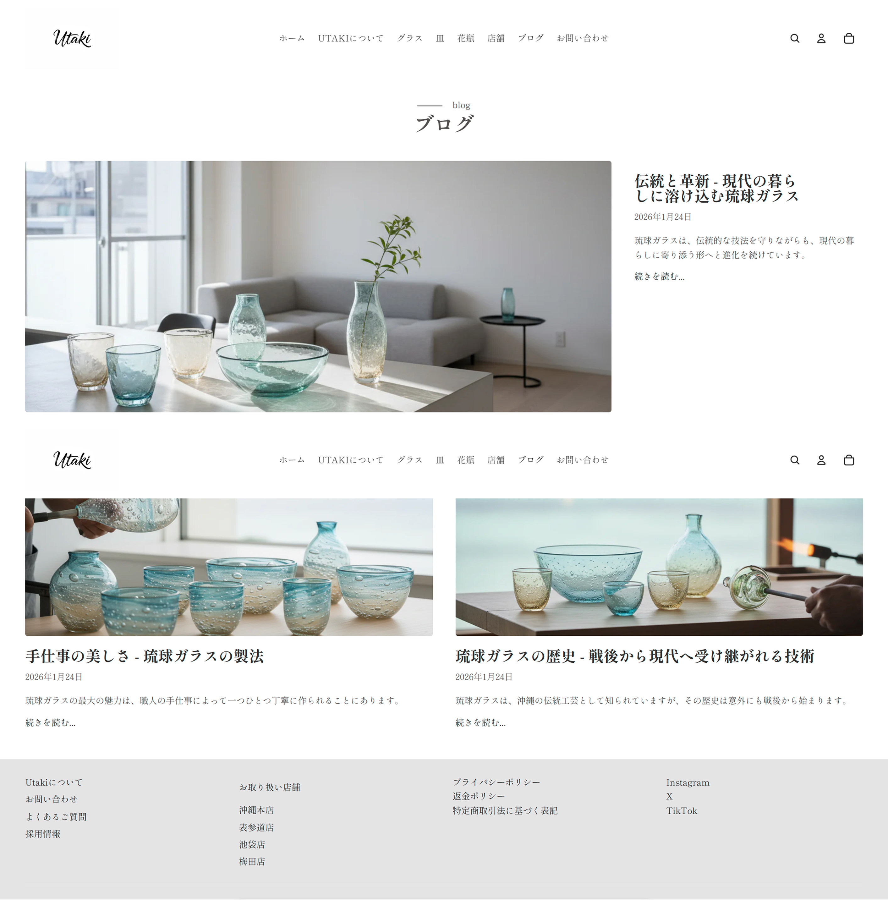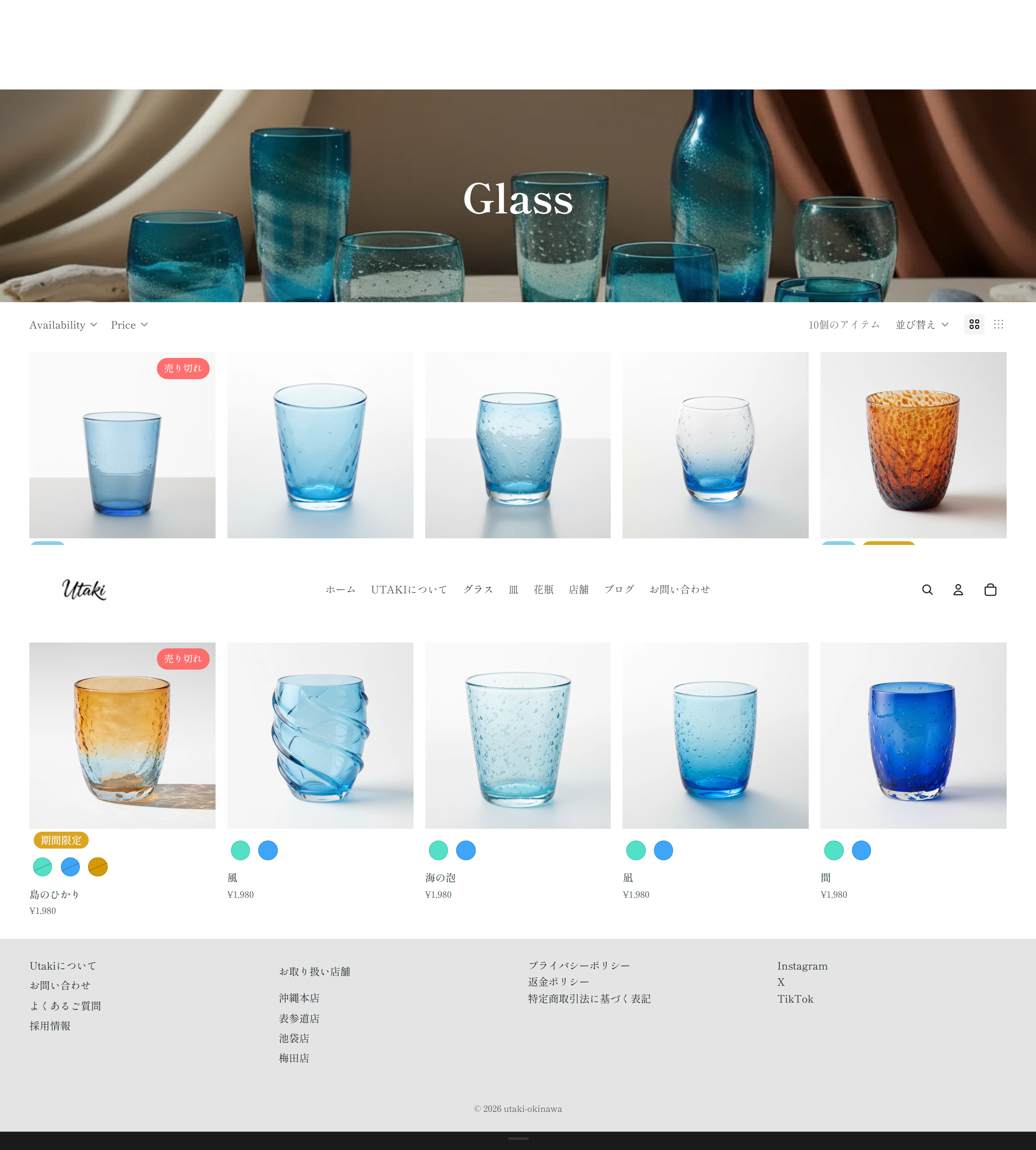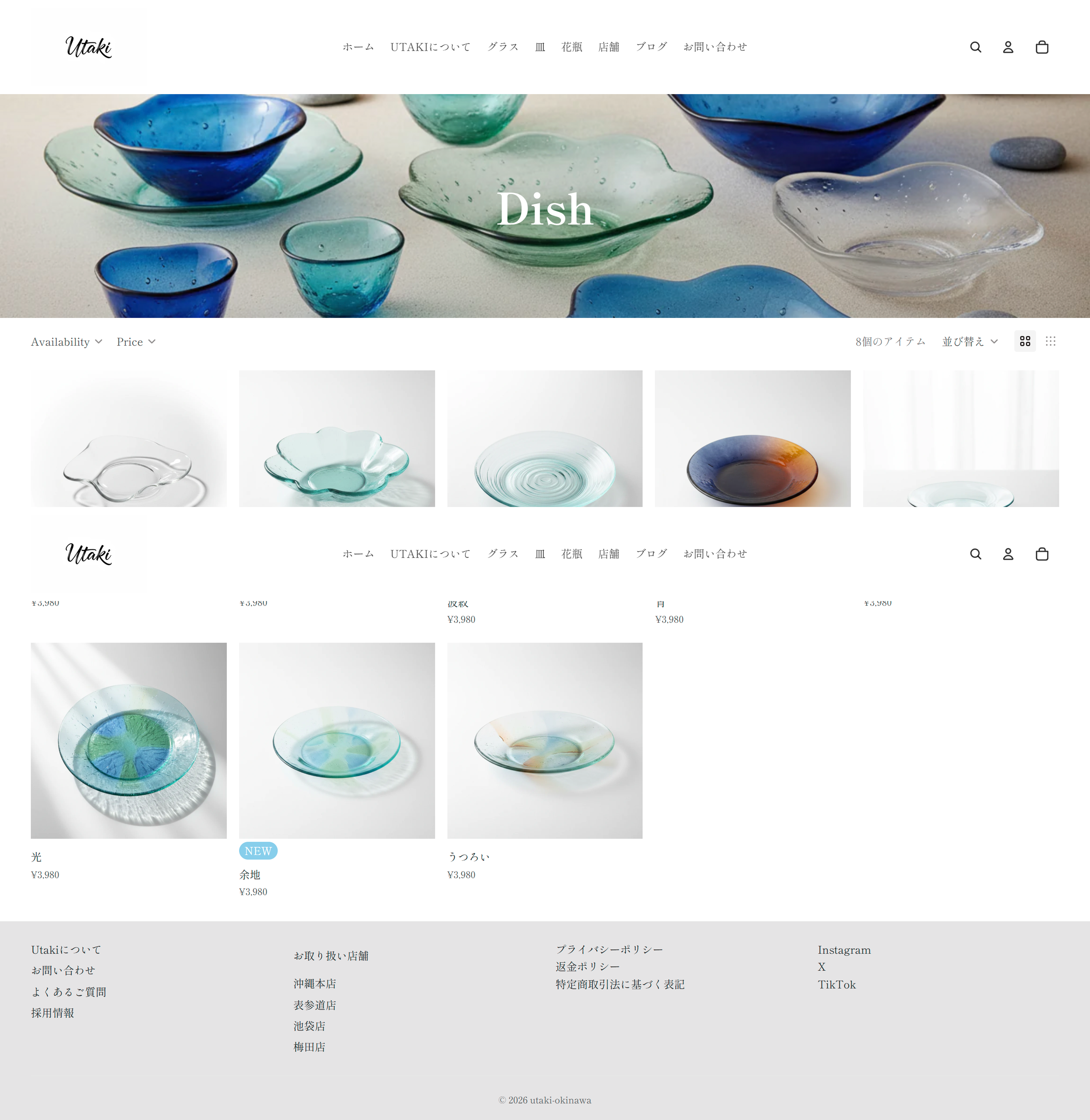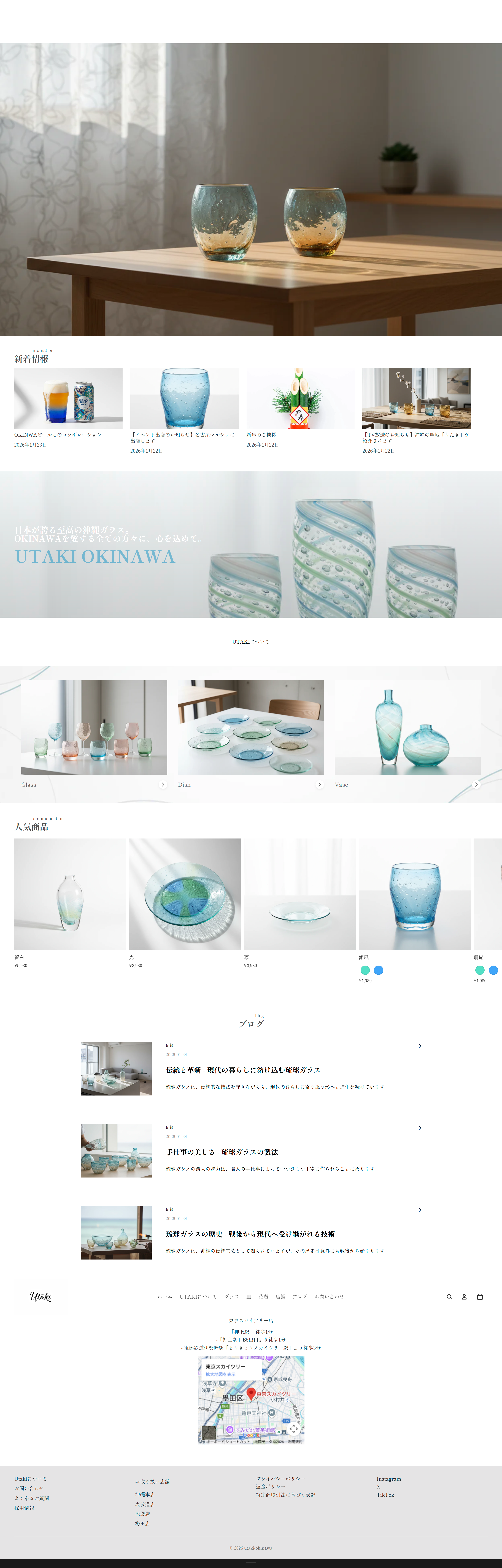 沖縄文化の1つである琉球ガラスを販売するUtaki 様のShopify ECサイトを構築しました。